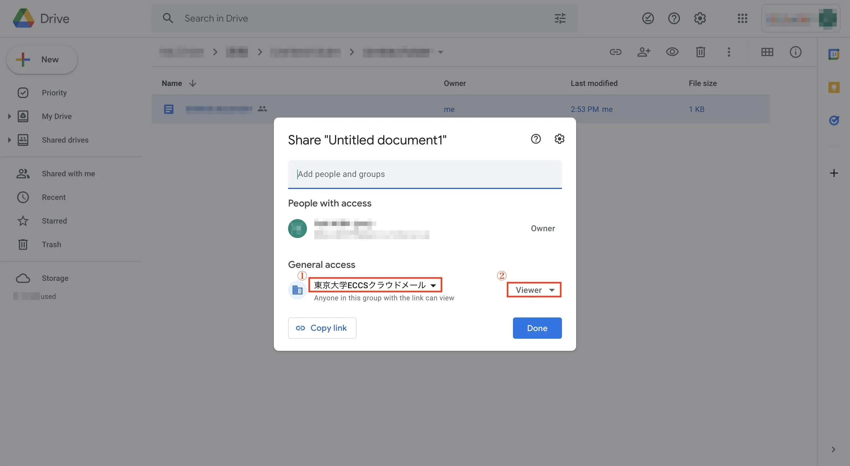 2. Share the file: You can share the file by registering the Google account of the person you want to share with, or simply by copying the link and sending it to that person.