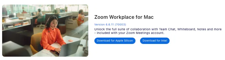 2. Please press the “Download” button in “Zoom Workplace”. The Zoom Workplace installer will be downloaded (“Zoom Workplace” is the name of the app for using Zoom).