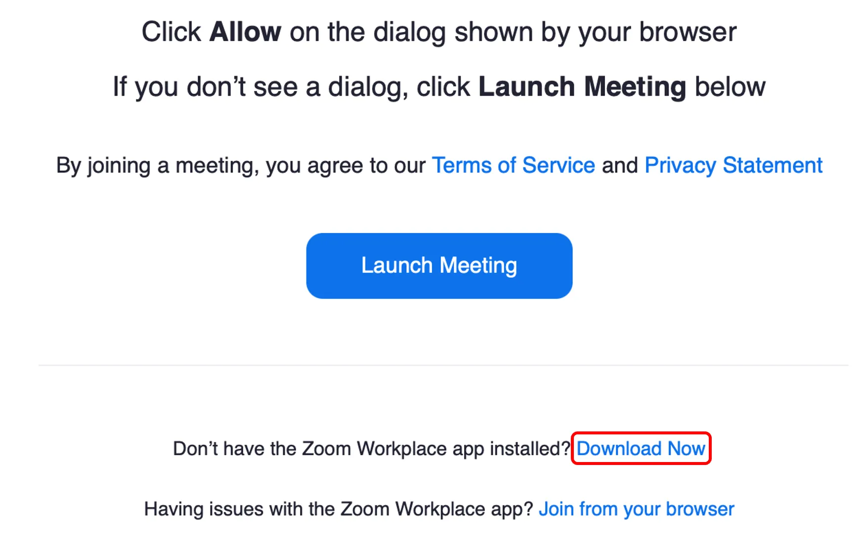 2. When the Zoom app is not installed, the files you need are downloaded automatically. If it is not downloaded, the following screen appears and you can download them by pressing “Download Now”.