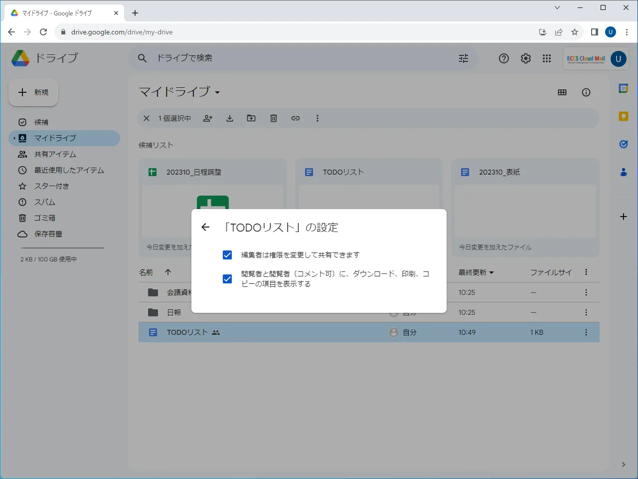 「共有ドライブ」機能を利用している場合は,これらの設定は共有ドライブ全体で行うことになり,ファイルごと・フォルダごとに変更することはできません.