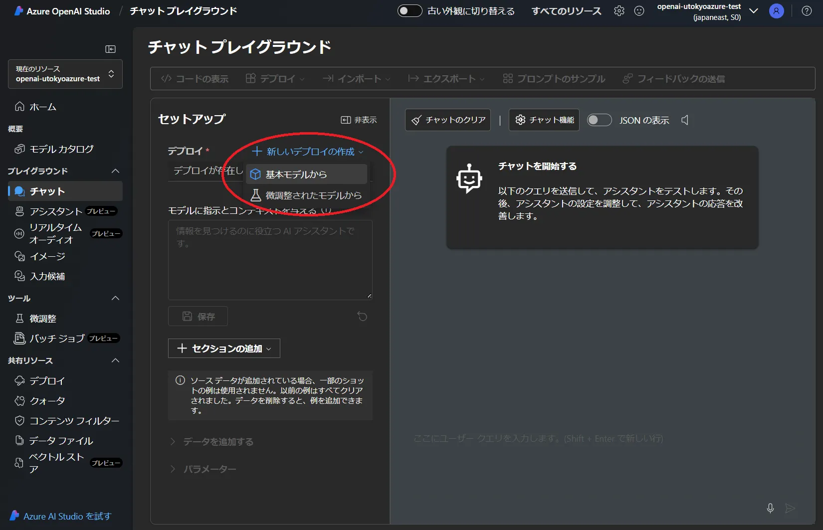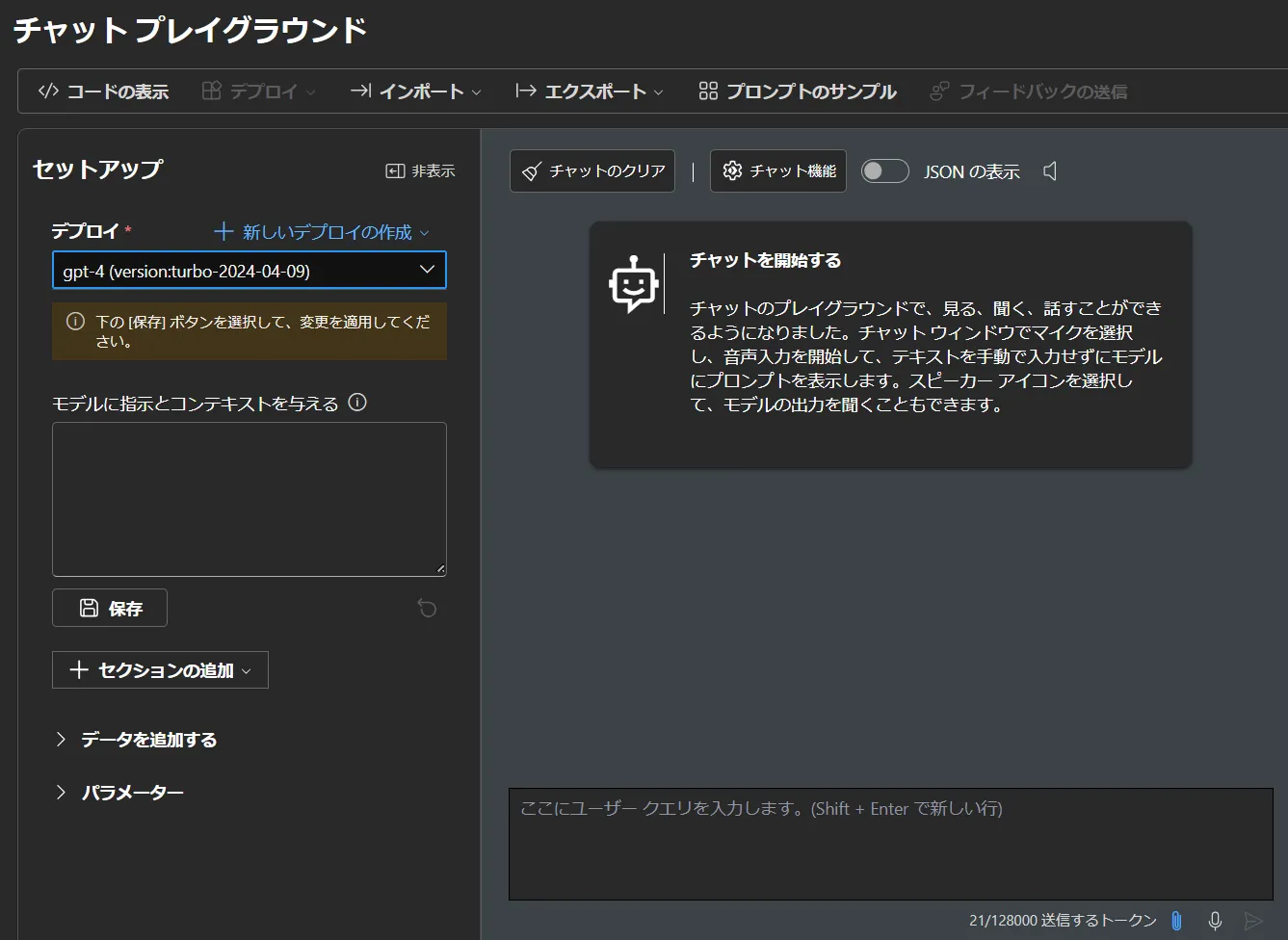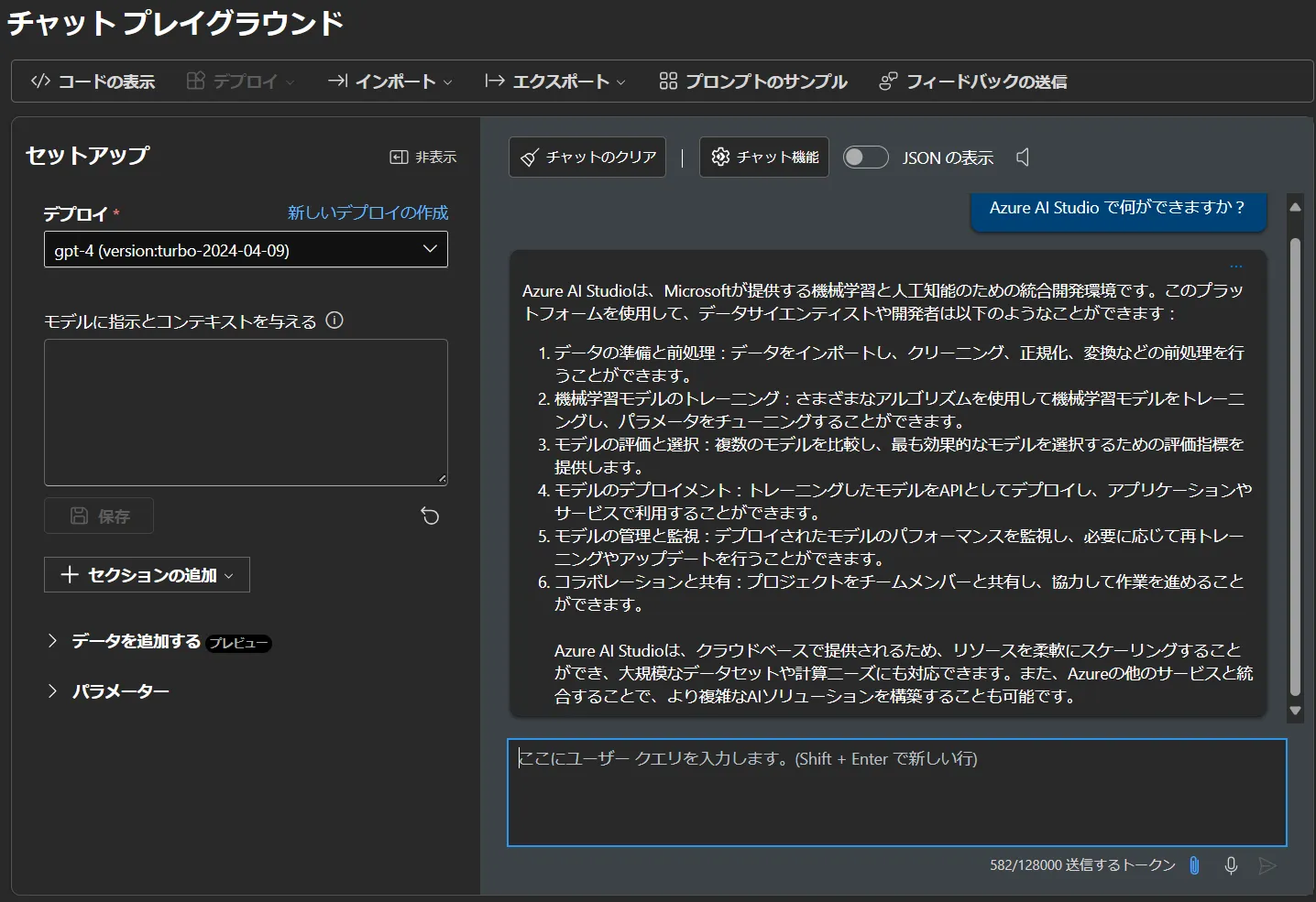 - チャットプレイグランドが下図のようになりましたら完了です.